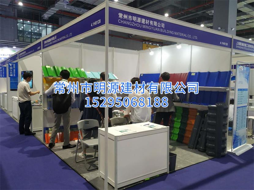 常州市明源建材有限公司(以下簡(jiǎn)稱本公司)參加第十一屆上海國(guó)際新材料展覽會(huì),本次展會(huì)本公司帶了許多公司新型產(chǎn)品為觀眾展示,其中有許多是觀眾需要的產(chǎn)品,引來(lái)了多人的關(guān)注和咨詢。本公司生產(chǎn)的新型防腐瓦是許多工廠和公司需要的產(chǎn)品,這可以為廣大廠房節(jié)省許多后期維修的費(fèi)用,還方便了人們的時(shí)間和精力,相比彩鋼瓦和鐵皮瓦,防腐瓦是不會(huì)生銹的,所以許多客戶都來(lái)了解產(chǎn)品。